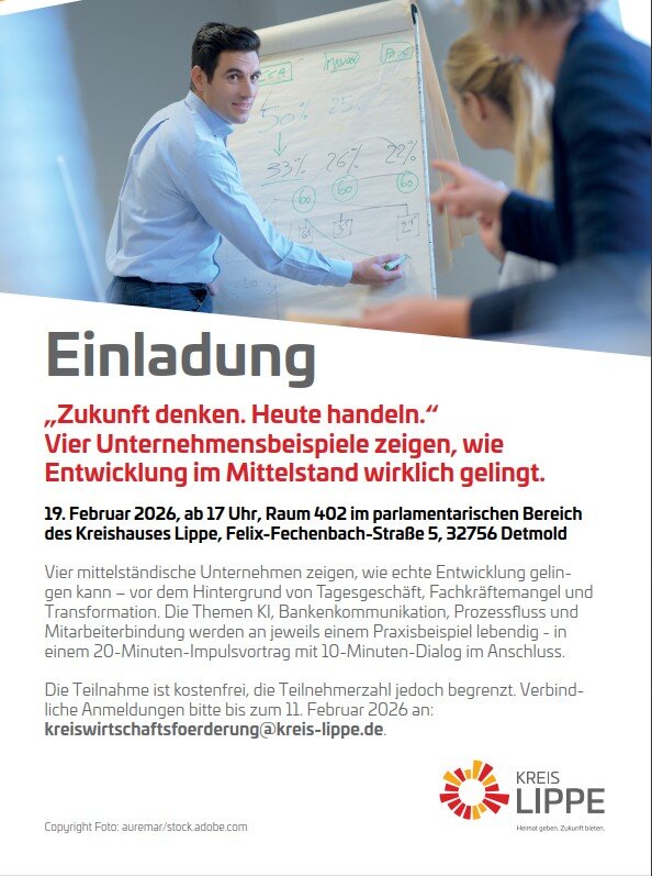 19. Februar 2026, ab 17 Uhr, Raum 402 im parlamentarischen Bereich des Kreishauses Lippe, Felix-Fechenbach-Straße 5, 32756 Detmold