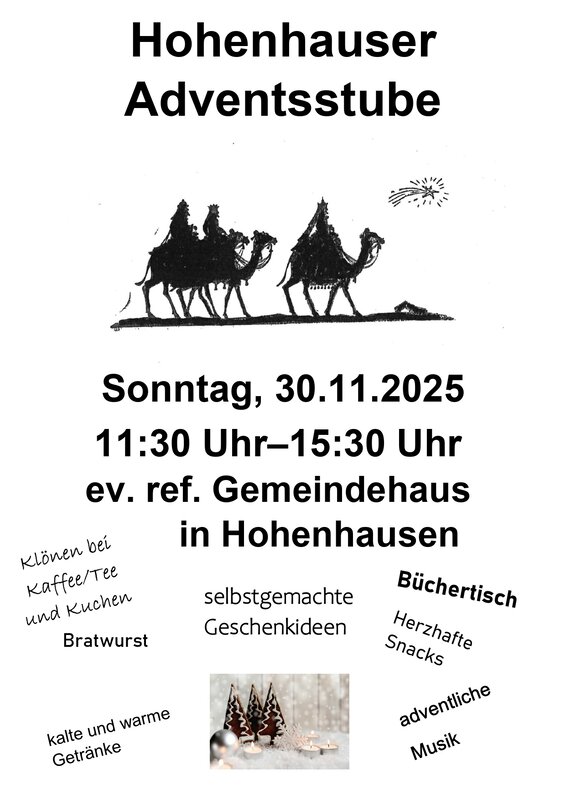 Die ev.-ref. Kirchengemeinde Hohenhausen lädt herzlich zur Hohenhauser Adventsstube ein.